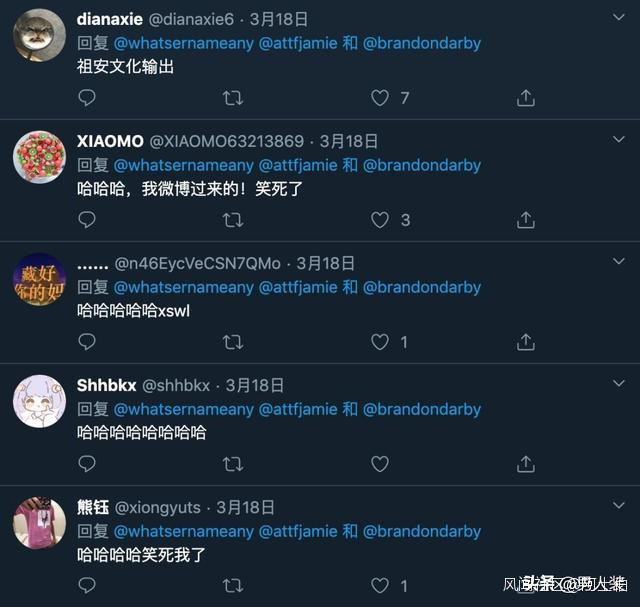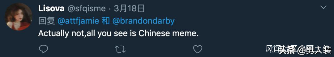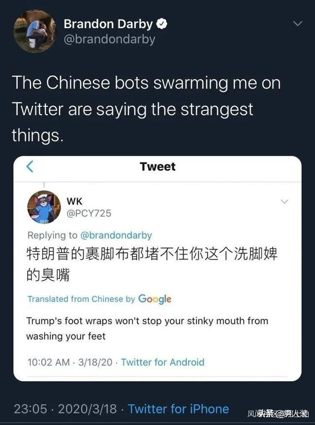 在他轉載的關於新冠病毒是中國病毒(Chinese virus is right)的荒謬言論下,國內網友的回覆right your mother right,一眼就能明白,那是熟悉的味道。