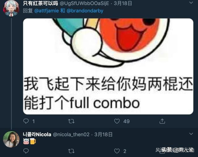 這位太鼓達人愛好者的日式深切問候,還輔以了傳統中式emoji回覆表示支援。至於牛和啤酒的意義,也帶給了老外雙重困惑。