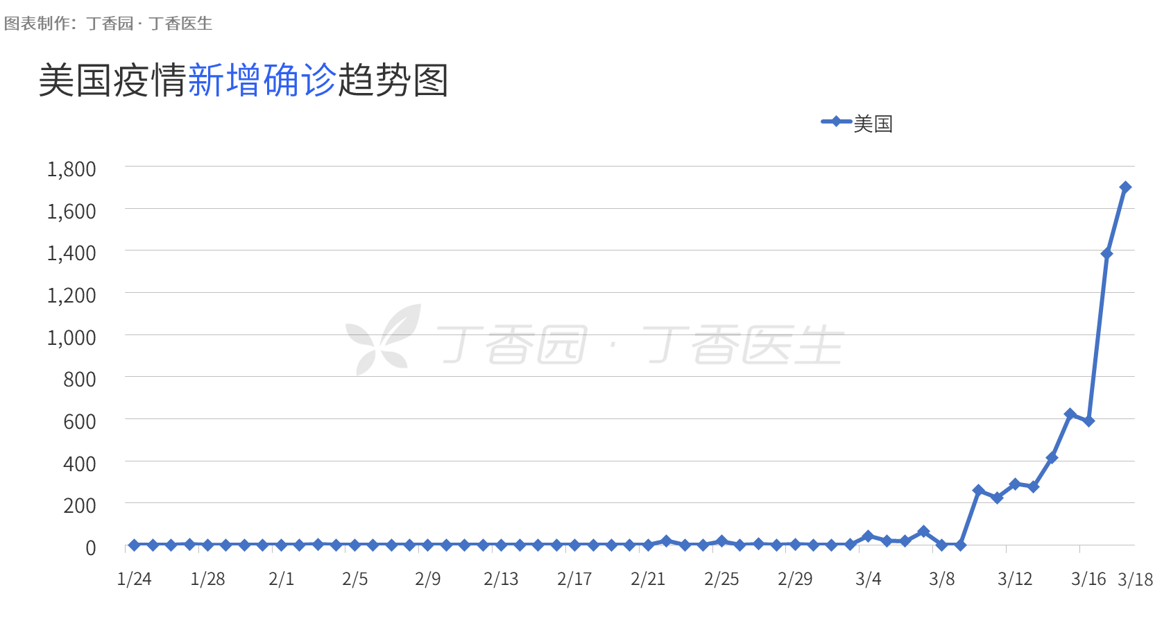 ▲美國疫情新增確診圖/圖片來源:丁香醫生