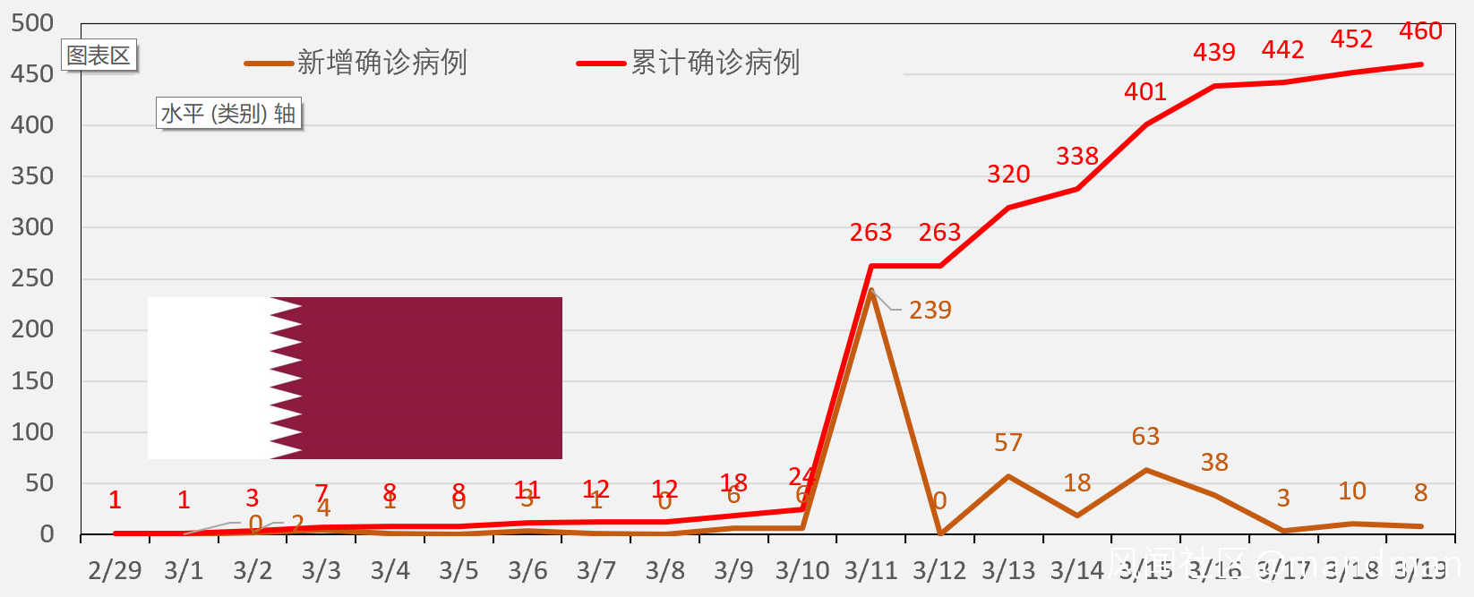 **卡塔爾:**新增8例,累計460例,百萬人口確診率為177。