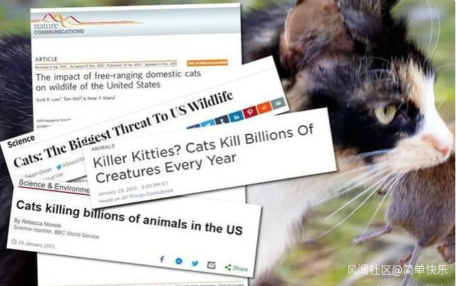 之前美國史密森保護生物學研究所和美國漁業與野生動物局的科學家對貓的殺傷力出了一份報告,估算出美國家貓每年殺死的鳥類和哺乳動物中位數分別為24億隻和123億隻。但是這份報告裏的“家貓”涵蓋了可以在户外自由活動的家貓,以及流浪貓和野貓。