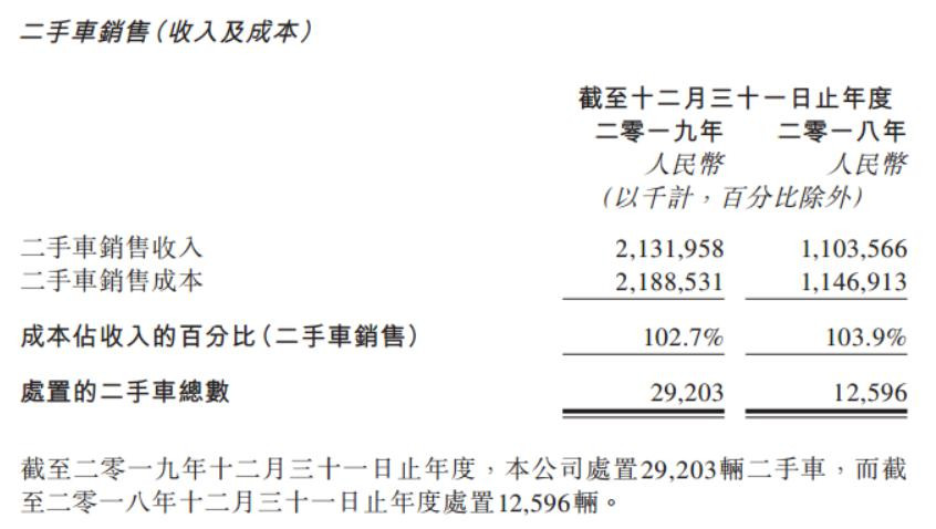 神州租車的二手車交易板塊銷售成本佔收入比重為102.7%,是實打實的虧本買賣。而神州租車對虧損的解釋為,由於對估計剩餘價值作進一步調整來作為處置更多二手車的方式,導致了較高的折舊成本。