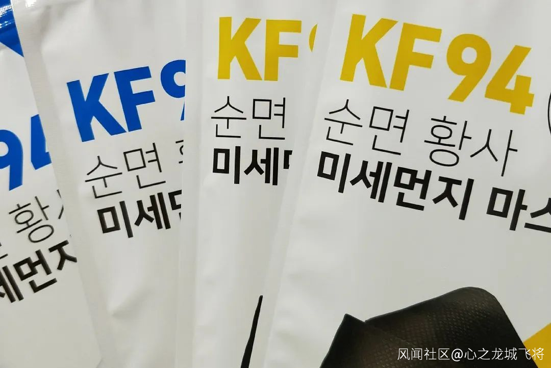 韓國市場上的口罩分為醫用型和普通型。其中,醫用口罩按照食品醫藥品安全處制定的KF系列標準,分為KF80、KF94、KF99。店裏出售的一般是KF80和KF94兩種。KF80對直徑0.6微米以上顆粒物阻擋率達80%以上;KF94對直徑0.4微米以上的顆粒物阻擋率達94%以上。