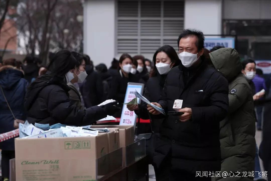 由於疫情突然暴發,各地口罩迅速斷貨。2月27日起,韓國政府開始在郵局、藥店等處出售口罩。有人凌晨4點就開始排隊,等待六七個小時才能買到5個,還有許多人排了一上午隊卻空手而歸。人們因此怨聲四起,口罩銷售點前密密麻麻的隊伍,更令人不禁捏一把汗。