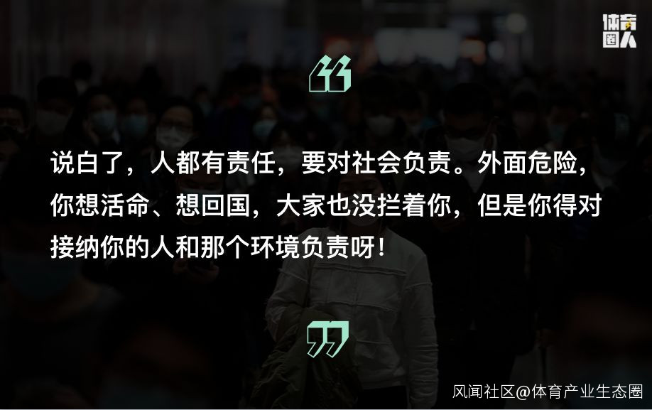 説白了,人都有責任,要對社會負責。外面危險,你想活命、想回國,大家沒攔着你,但是你得對接納你的人和那個環境負責呀!
