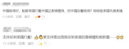 對於外交部的反制措施,一眾香港網友都大讚“做得好”。有人還提議,針對香港的毒媒體和假新聞,也應推出措施反制。