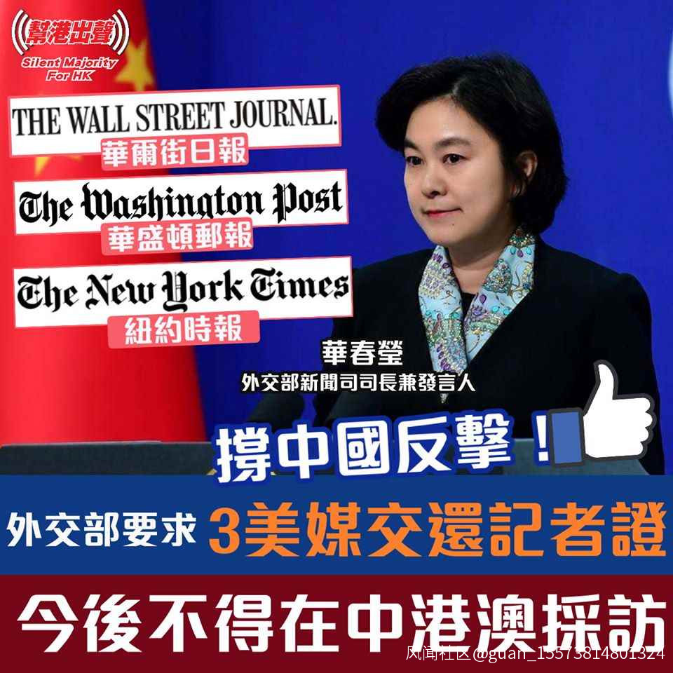 其中,最令香港網友拍手稱快的是,中方對美國反制措施的第二條:“針對美方大幅削減、實際驅逐中國媒體駐美機構員工,中方要求《紐約時報》、《華爾街日報》、《華盛頓郵報》年底前記者證到期的美籍記者從即日起4天內向外交部新聞司申報名單,並於10天內交還記者證,今後不得在中華人民共和國,包括香港、澳門特別行政區繼續從事記者工作。”