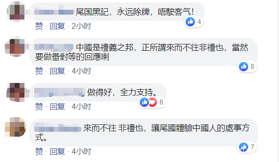 對此,不少香港網友都認為“來而不往,非禮也”,紛紛表示支持中方對美國的反制措施。↓