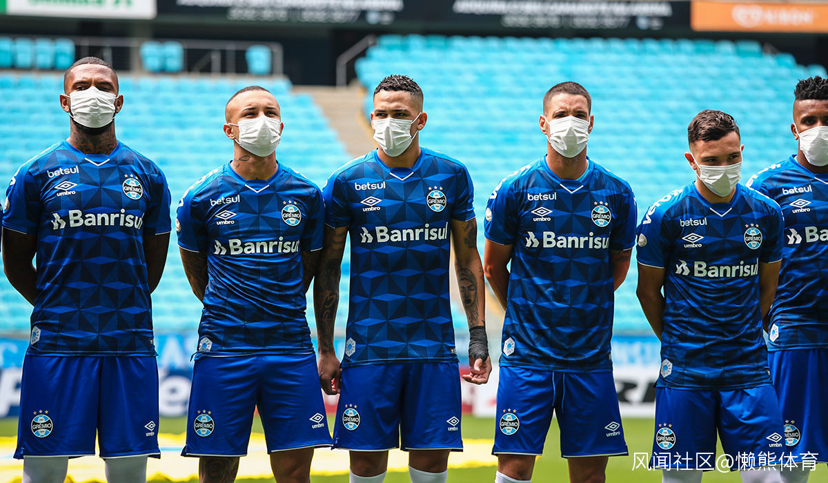 ▲巴甲格雷米奧隊球員集體戴口罩出場抗疫疫情期間比賽