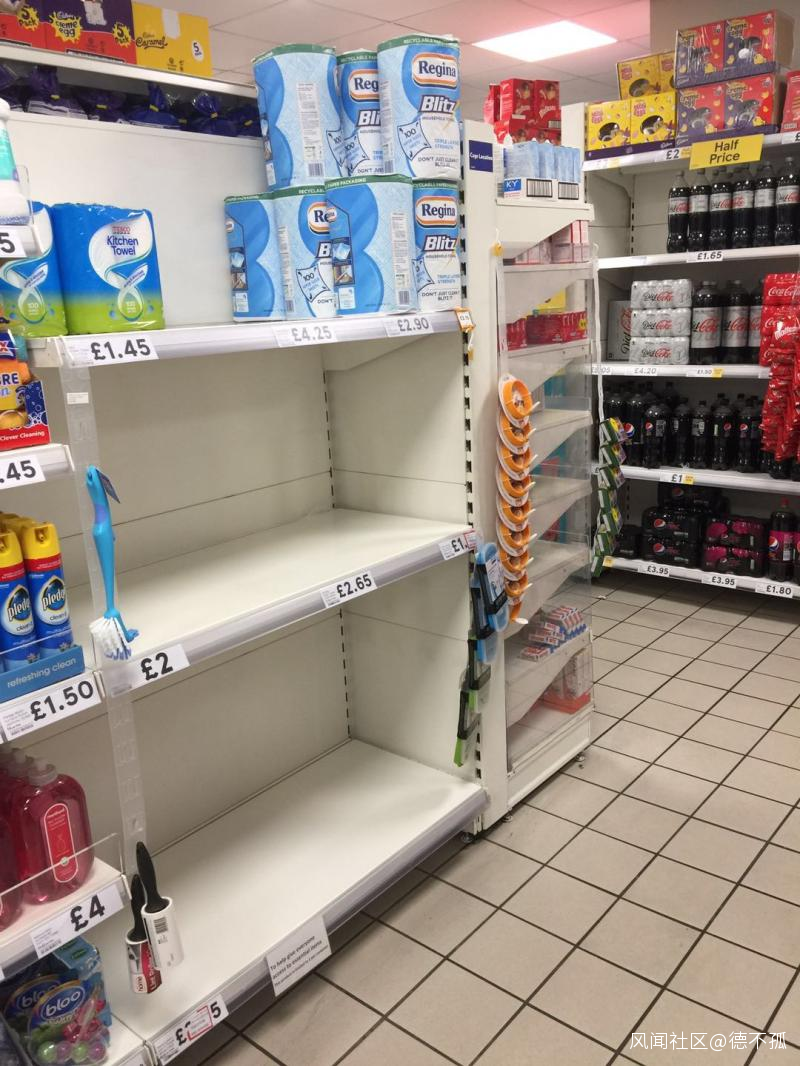 隨着英國確診病例的增加,幾乎所有超市都已開始出現搶購。“生活用品,要是不早起去排隊,就根本買不到。”柳琦向記者描述,每人消毒用品只能買3個,而且一定要去得早才能買到。