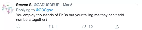 美國網友回覆CDC :你們僱了幾千個博士,卻告訴我他們不能把數字加在一起?推特截圖