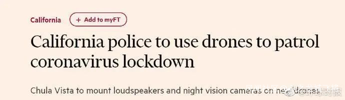 3據英國《金融時報》20日報道,美國加州警察局計劃將使用配備揚聲器和攝像頭的無人機進行美國新冠疫情“居家隔離”時期的巡查防疫工作。