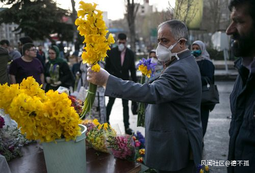 3月19日,有伊朗民眾戴着口罩在挑選鮮花,準備慶祝節日。新華社發