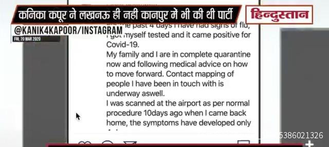 但不知道是什麼原因,10天前Kanika從倫敦回到了印度。眼看着病毒已經傳開,但是這位女明星不僅沒有自我隔離,反而在印度參加各種派對和宴會,唱歌、過生日,甚至參加政界會議……