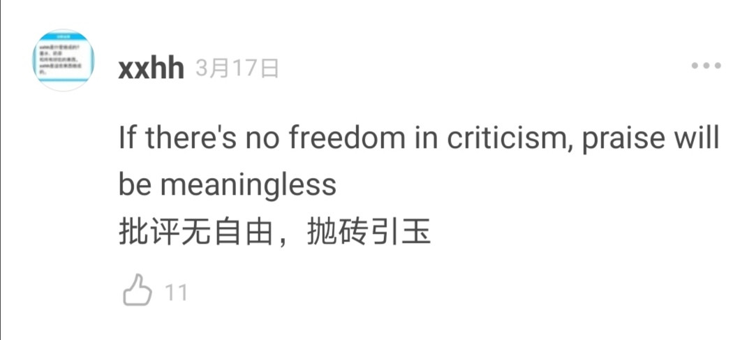 If there’s no freedom in criticism, praise will be meaningless 批評無自由,拋磚引玉