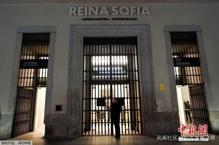 當地時間3月11日,西班牙首都馬德里,由於新冠肺炎疫情在當地爆發,馬德里的所有國營博物館都已關閉。圖為保安人員關閉了雷納·索非亞博物館的大門。