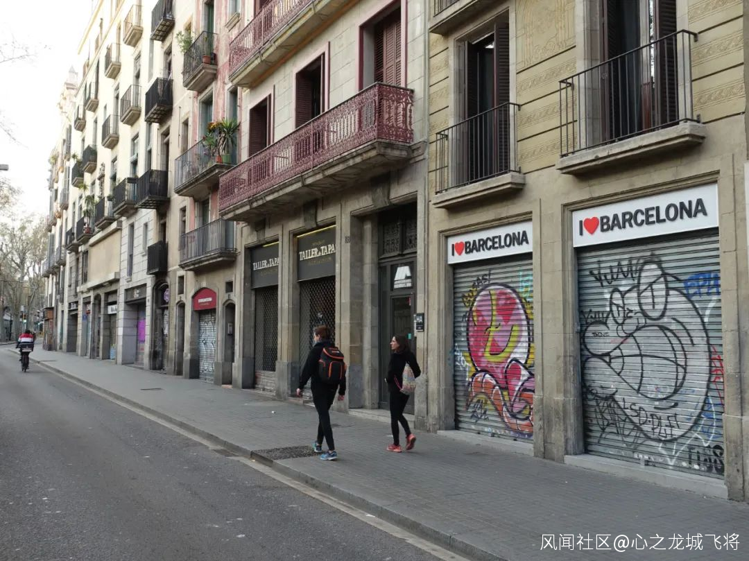 3月14日,西班牙巴塞羅那蘭布拉大道旁邊的商店關門停業。新華社發(周喆 攝)