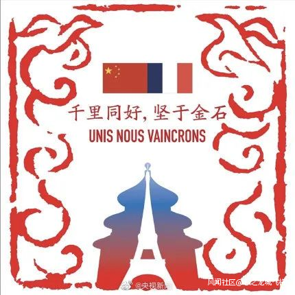 中國向法國提供的醫療物資包裝上,印有中國古語“千里同好堅於金石”(圖源:央視新聞)