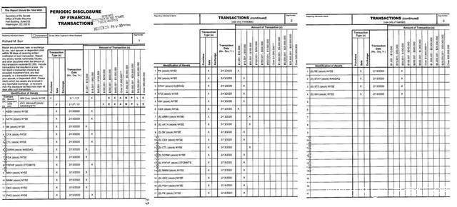 參議院情報委員會主席伯爾在2月13日,也就是股市下跌前一週,出售了價值62.8萬至172萬美元的股票。