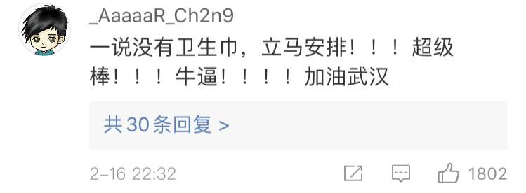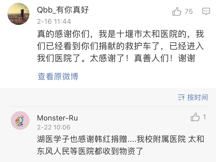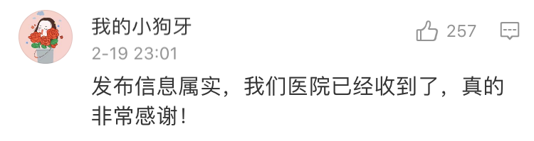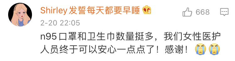 每天的物資明細微博下,都有很多收到物資的醫護人員前來表示感謝: