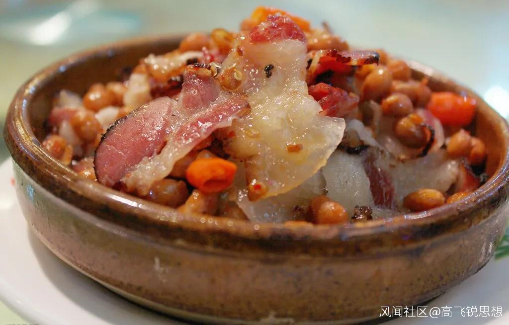 小時候,兄弟姐妹四個,愛串門,走親戚。從初一那天起,我們就穿上最好的衣服,到處拜年去了,叔姨伯姑的,非得挨個走遍才行。當然,親戚家沒有那麼多雞鴨魚肉招待,臘肉算是最好的菜了,不多,一般是一碗,裏面放了雜七雜八的輔料,但餐餐有。主人寧願自己不吃,也要讓客人吃飽吃好,這是我們那兒的待客之道。每餐有一塊二指粗的臘肉,一碗白米飯,那就是幸福好時光了。