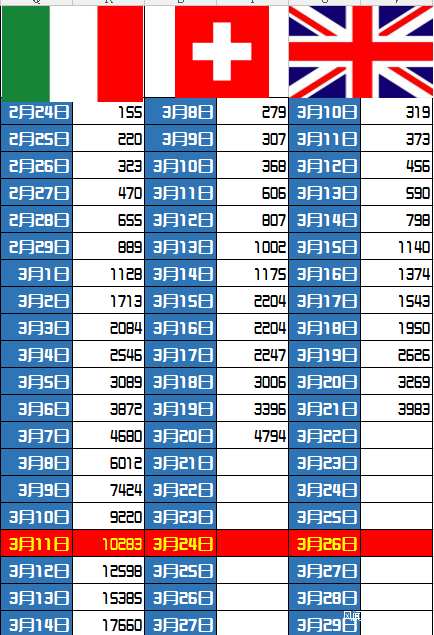 同樣值得關注的是英國和瑞士,如果沒有相對應政策,下週破萬應該是大概率事件。