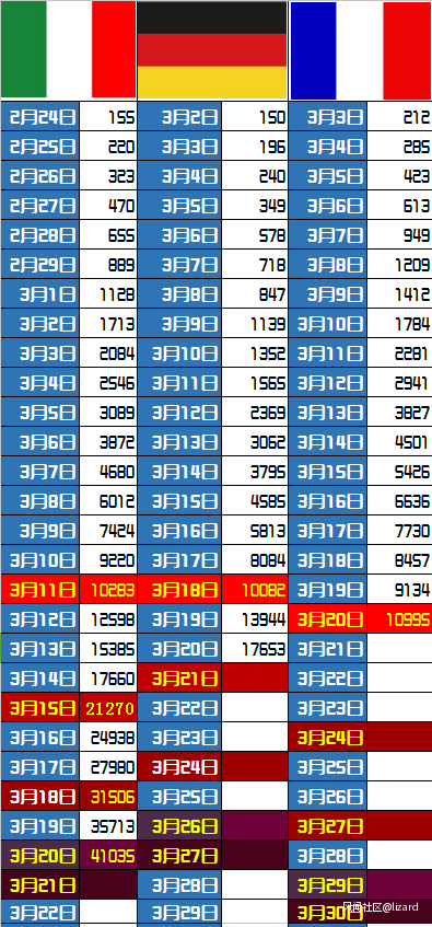 德國增長迅速,就當地人的微博看,德國目前沒有封城措施,口罩也不是全民佩戴。