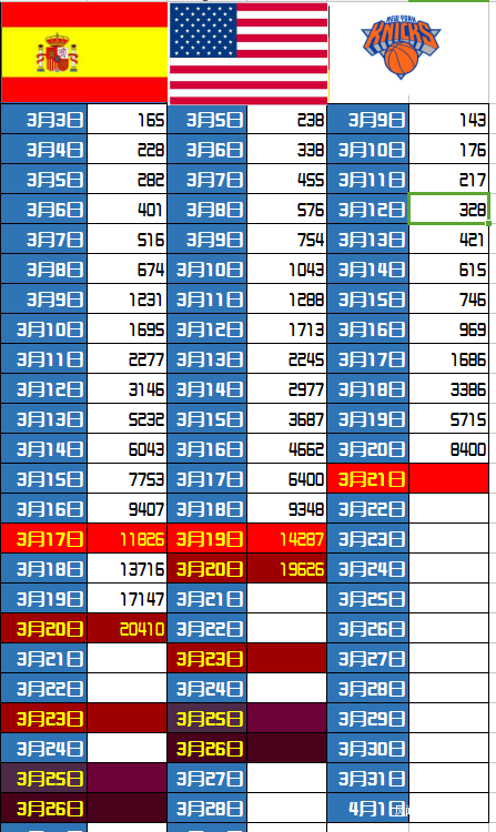 西班牙繼續急速增加,翻倍事件只有兩天,這根當地民眾有直接關係