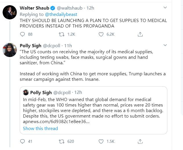 另一個同樣獲得大量的點讚的評論也表示:” 不去和中國合作獲取更多物資,而是發起污衊對方的輿論戰,特朗普真的瘋了。”