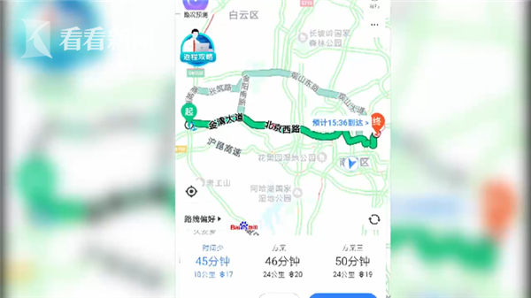此外,這名出租車司機還要求兩人先付款,後乘車。因擔心被甩客,兩人乖乖的付了錢。小覃兩人的目的地是貴陽市實驗三中,記者從百度地圖上搜索,從金陽客車站到實驗三中,導航線路顯示最遠距離才24公里。按照貴陽市出租車正常打表價格來計算,也就在五十塊錢左右。