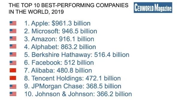 全球最大的20家互聯網技術公司,美國11家,中國9家,答案就是這樣!