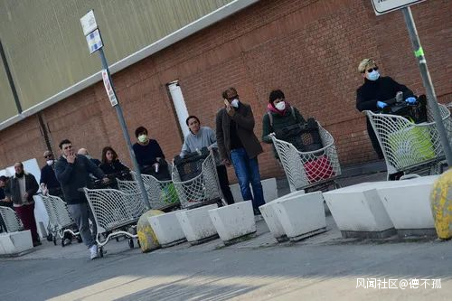 3月20日,在意大利博洛尼亞,人們在超市外排隊等待購物。新華社發