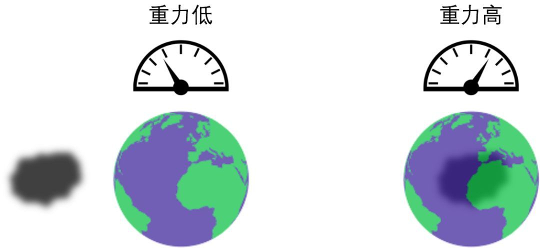 對於更小質量的暗物質團塊,研究者們採用了另外一種方法進行探測:利用暗物質可以與普通物質相互穿透這一特點,捕捉暗物質團塊進入其他普通物質時對重力產生的影響。如果在地球軌道上存在暗物質團塊,那麼隨着地球公轉,就會有暗物質穿過地球。當暗物質處在地球以內這段時間,就會對地表重力產生影響。