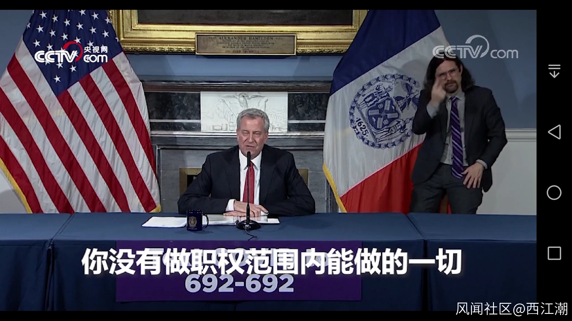 圖:紐約市長白思豪19日怒斥特朗普失職