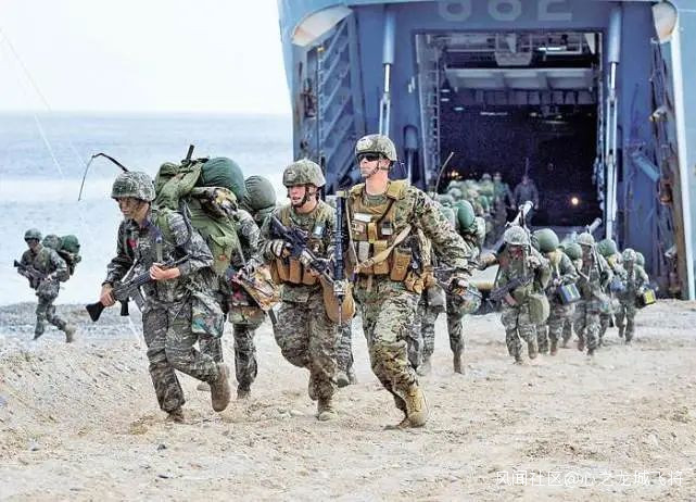 美國海軍陸戰隊和日本自衞隊聯合登陸訓練。 報道稱,澳大利亞是美國海軍陸戰隊為應對中國而在太平洋地區重新部署計劃的關鍵盟友。預計今年將有大約2500名美軍陸戰隊員到澳大利亞進行為期六個月的輪換部署,規模和去年大致相同。