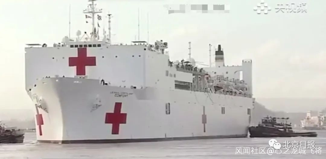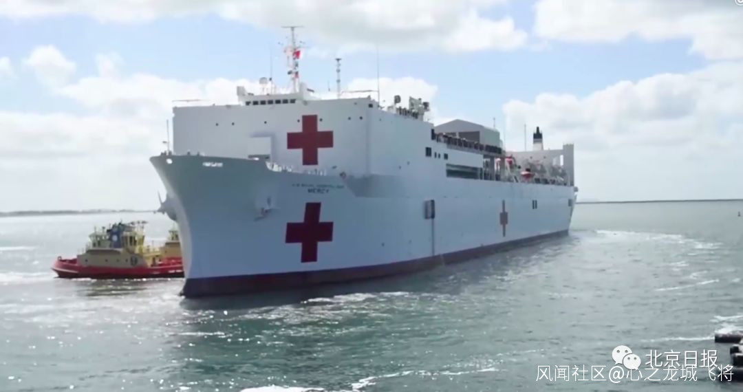 大意是,美國10艘醫療軍艦已經開進紐約港,每艘船上有1000張病牀,上面擁有所有的醫療搶救設施,每艘船就相當於一個雷神山醫院。