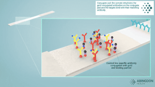 檢查線和對照線是能夠捕捉膠體金的不同物質。成功捕捉後,它倆就會顯色變紅,這樣就可以給出檢測結果了。