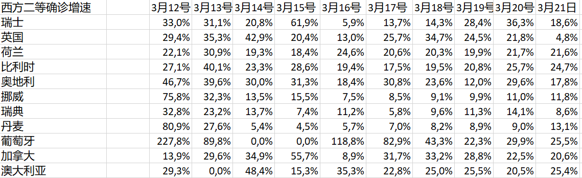 其中英國今天的升速最低。這又是不正常的。應當是數據錯誤。明天看它會不會升回來。挪威、瑞典和丹麥的較低升速則是正常的。因為,好多天以來,它們就是在以比較低的速度增長。
