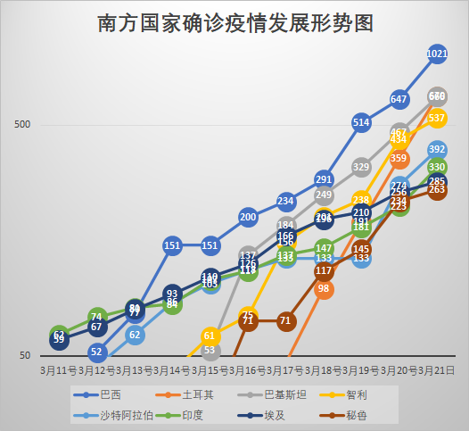 第三危險當然是智利。它也是兩天翻番,只是底數第一點。如果增速不變,四天後2000,八天後8000可期。