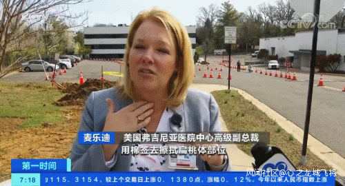 美國弗吉尼亞醫院中心高級副總裁 麥樂迪:被檢測者把車開到第二個停車點,然後搖下車窗,我們的工作人員會要求他們張開嘴,頭後仰,用棉籤去擦拭扁桃體部位。