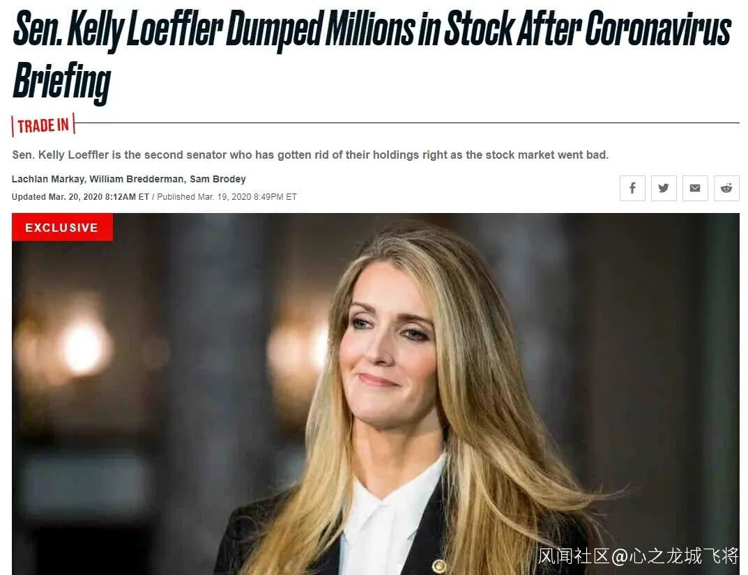 今年1月,佐治亞州參議員凱莉·萊夫勒在剛剛就職兩週後參加了一場內部舉行的冠狀病毒信息發佈會。這場發佈會由包括國家過敏症和傳染病研究所所長安東尼·福西在內的政府官員舉辦。據野獸日報網站報道,凱莉·萊夫勒和她的丈夫當天開始拋售數百萬股股票,並且在接下來的幾周持續賣出。他們也買入了股票:有一家公司專門開發幫助人們遠程辦公的技術,他們買入了這家公司價值10萬至25萬美元的股票。