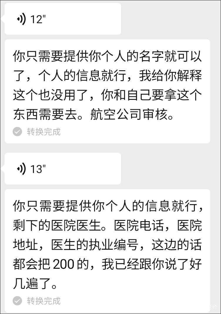 對於機場方面如何檢查,以及醫院這邊的信息怎麼處理,對方並沒有透露太多,只是告訴我,我需要辦證明,提供自己的信息就好了。