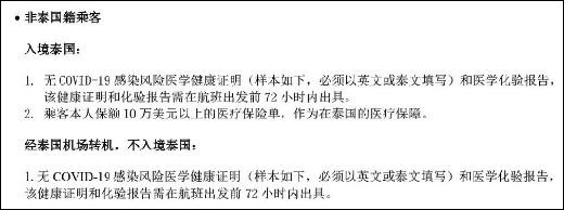 我查到,泰國航空是有相關規定,其中經過泰國轉機的旅客,需要提供未感染新冠肺炎的健康證明,以及相關醫學化驗報告。