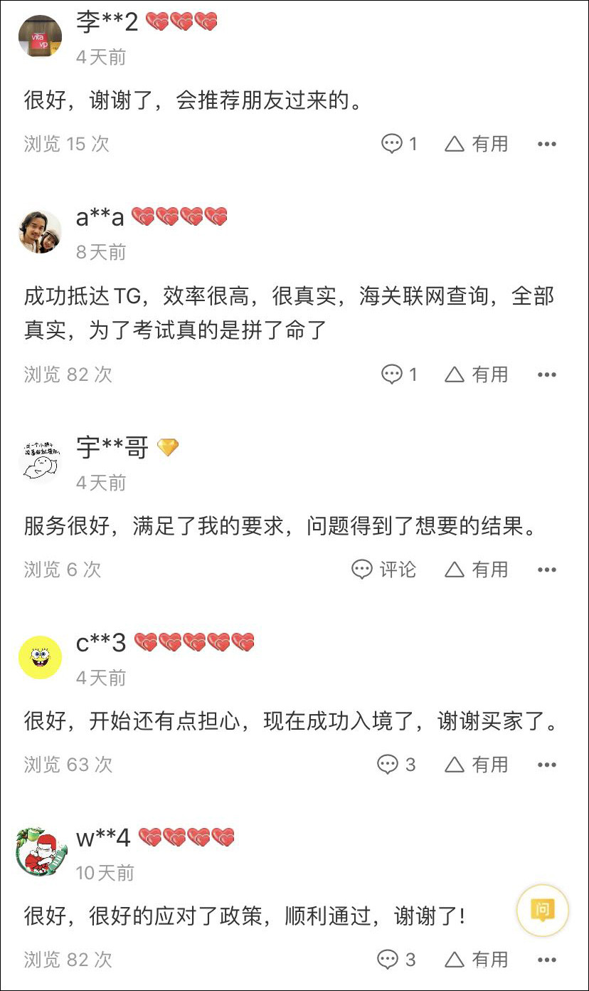 這是其中一家店鋪下面買家的評論,他們説用賣家提供的證明,可以入境。不過看不出來這些是刷單的,還是真實買家。