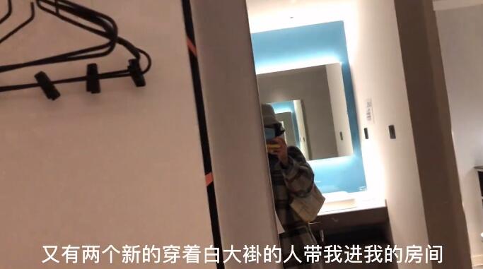 隨後,有兩名穿着白大褂的工作人員,帶着@元兒jasmine 來到了她隔離時住的房間。在一路上,工作人員還貼心的問她,這一路上順不順利。