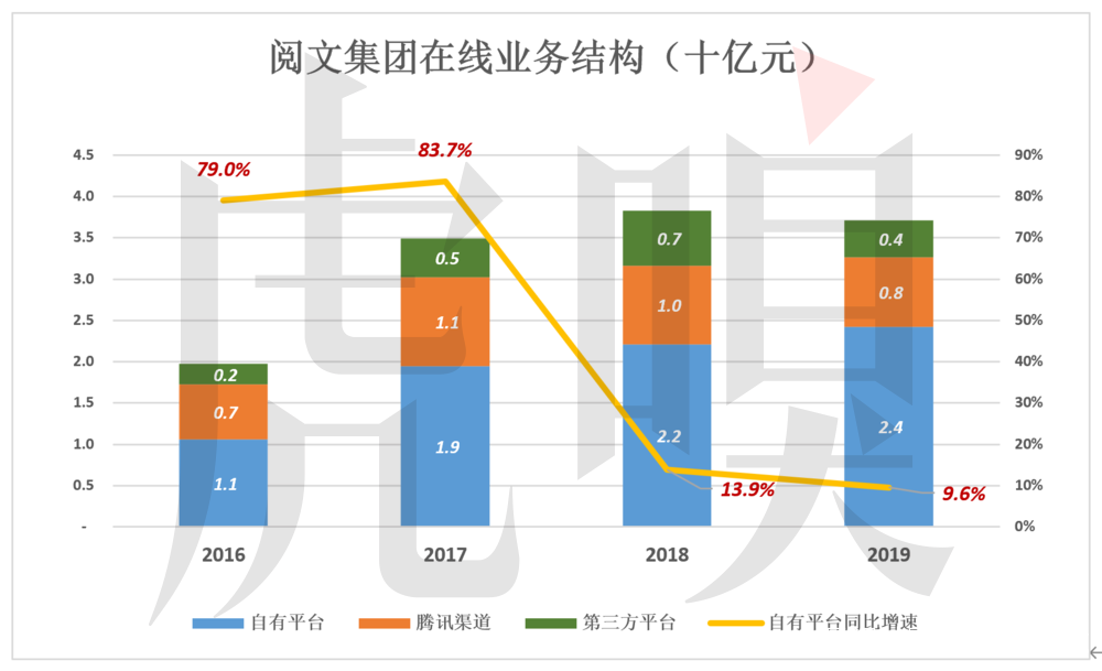 2018年來自騰訊渠道的收入為9.52億,佔在線閲讀收入的24.9%,較2017年有所下降。2019年進一步降到8.36億,佔比22.5%。騰訊渠道對閲文舉足輕重,但收入連續三年下降,説明騰訊光環“含金量”僅此而已。