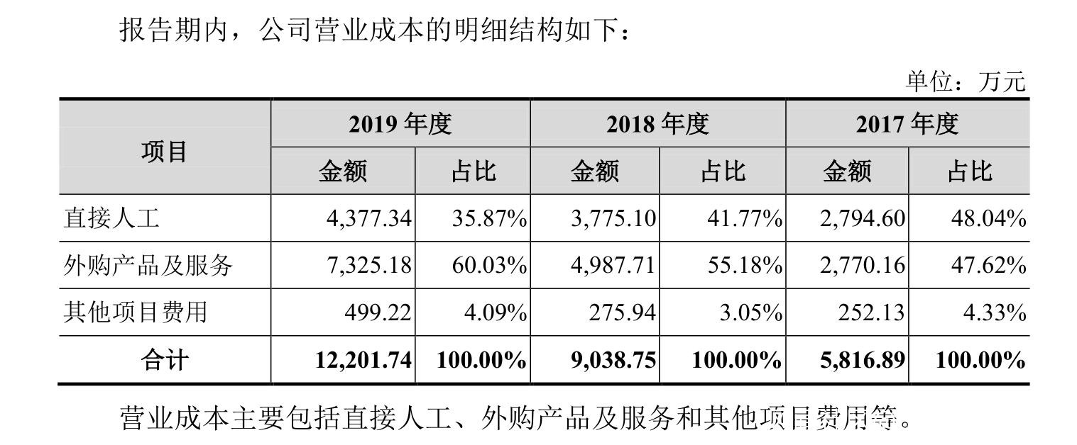 從財務結構看,開普雲2016年獲得的税收優惠和政府補貼佔其當年淨利潤的近一半,並且其外購產品及服務也在逐年遞增,2018年外購產品及服務佔成本的比例已超過50%。
