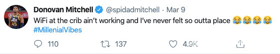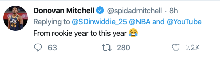 最後,之前確診的米切爾正在接受治療, 可能是有大把的時間,直接把自己從新秀到現在的視頻都看了一遍。