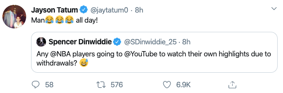塔圖姆則更為乾脆,直接來了句—— 整天都在看…