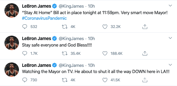 雖説之前還在線徵酒友,但是昨天湖人隊兩名球員確診之後,老詹也意識到問題的嚴重,連發三推!